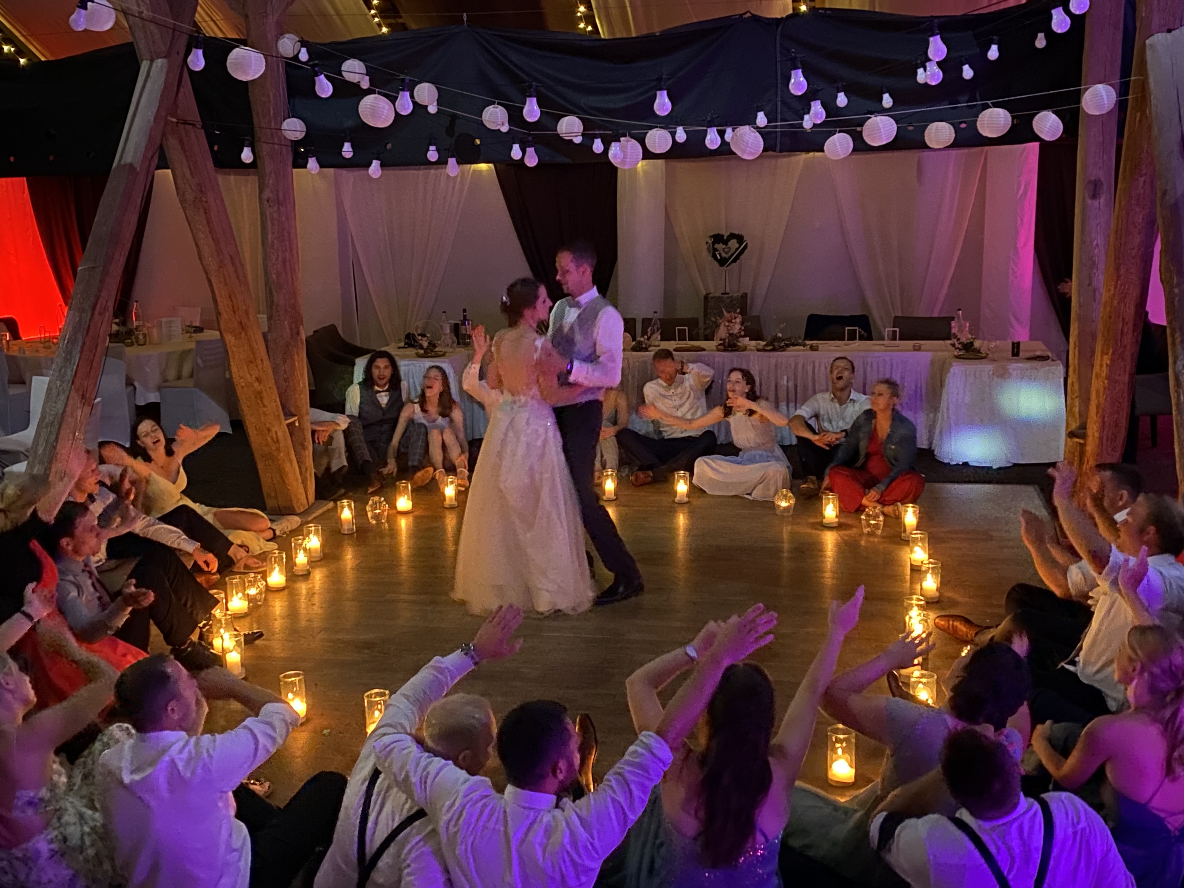 Von der ersten Minute an hat das junge Paar die gesamte Hochzeitsgesellschaft in ihren Bann gezogen. Angefangen von der sehr emotionalen Rede, über die Zusammenstellung des Menüs, dem extra eingeübten Ehrentanz, die liebevolle Auswahl der Dekorationen und Gastgeschenke, bis hin zur Präsenz bei ihren Gästen und auf der Tanzfläche.