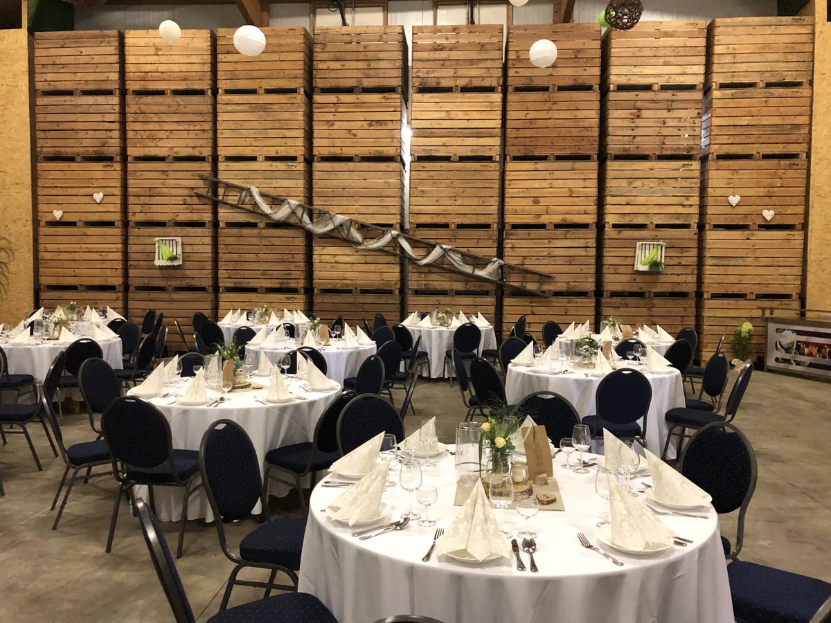Aber was das sympathische Brautpaar mit ihren Familien, Nachbarn und Freunden in wochenlanger (Kleinst-)Arbeit aus dieser "Scheune" gezaubert hat ist kaum in Worte zu fassen. Unzählige Kartoffelkisten als Raumtrenner, liebevoll ausgewählte und perfekt in Szene gesetzte Dekoartikel, eine "etwas andere Candy-Bar" und ein meterlanger Kranz vor dem großen Eingangstor sind nur einige der unvergesslichen Highlights. Die Augen der gut gelaunten Gäste konnten sich nicht satt sehen an den vielen tollen Details!