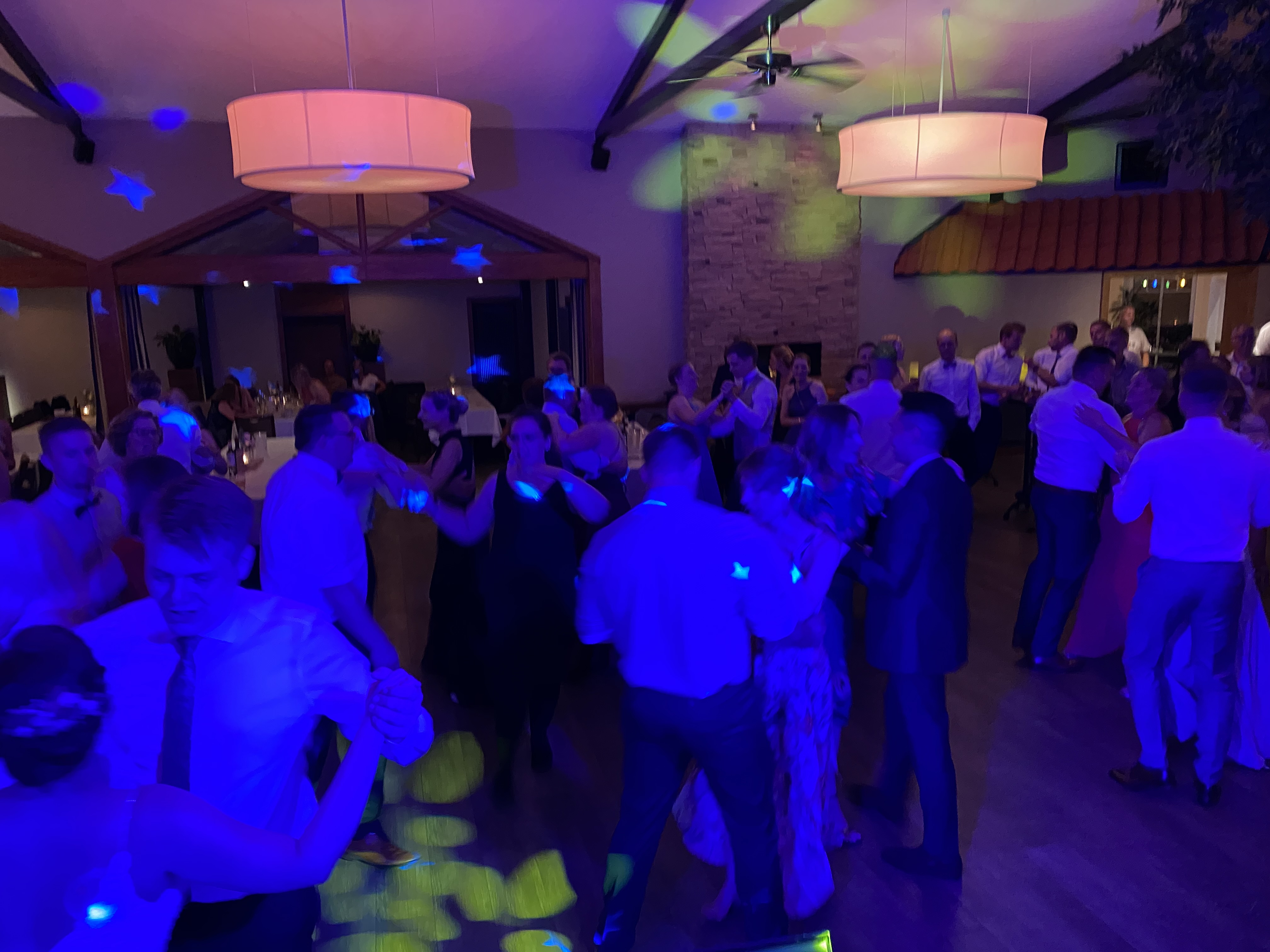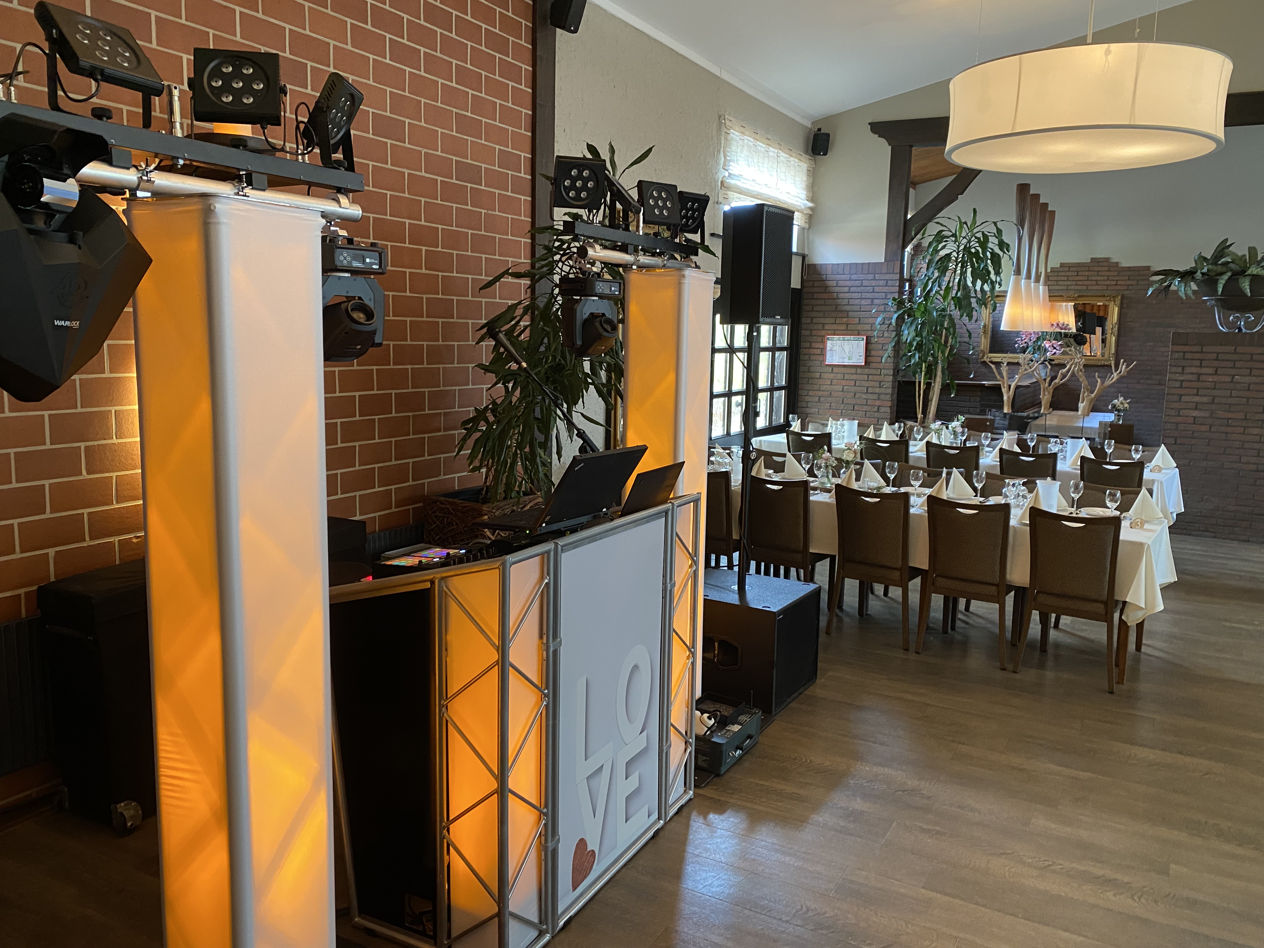 Vom Empfang auf der Terrasse über das leckere Essen bis hin zum emotionalen Kerzentanz ist die Hochzeit einfach rundum gelungen und wird allen Beteiligten vermutlich lange in Erinnerung bleiben. Aufgrund der Saalgröße kam mal wieder mein Hochzeitspaket "Premium" mit diversen Lichteffekten und Nebelkanonen zum Einsatz.