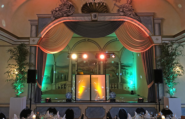 Duch die indirekte Beleuchtung von Objekten, Pfleilern und Decken ist eine ganz besondere Atmosphäre garantiert! Selbstverständlich passend zum Anlass in allen Wunschfarben möglich.