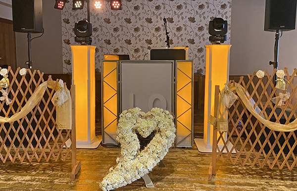 - 2 attraktive Lichtsäulen mit Moving-Heads (bewegtes Licht)