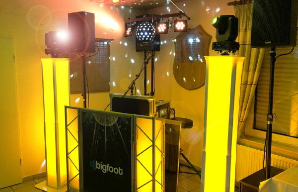 - 2 große Lichtsäulen mit Moving-Heads (bewegtes Licht)